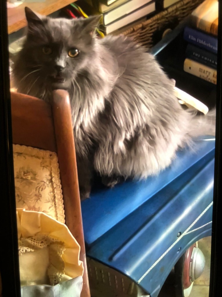So, I take my paw and move things around. I looked behind my nephew Grayson‘s picture, moved my sand dollar and, darn it, nothing.
