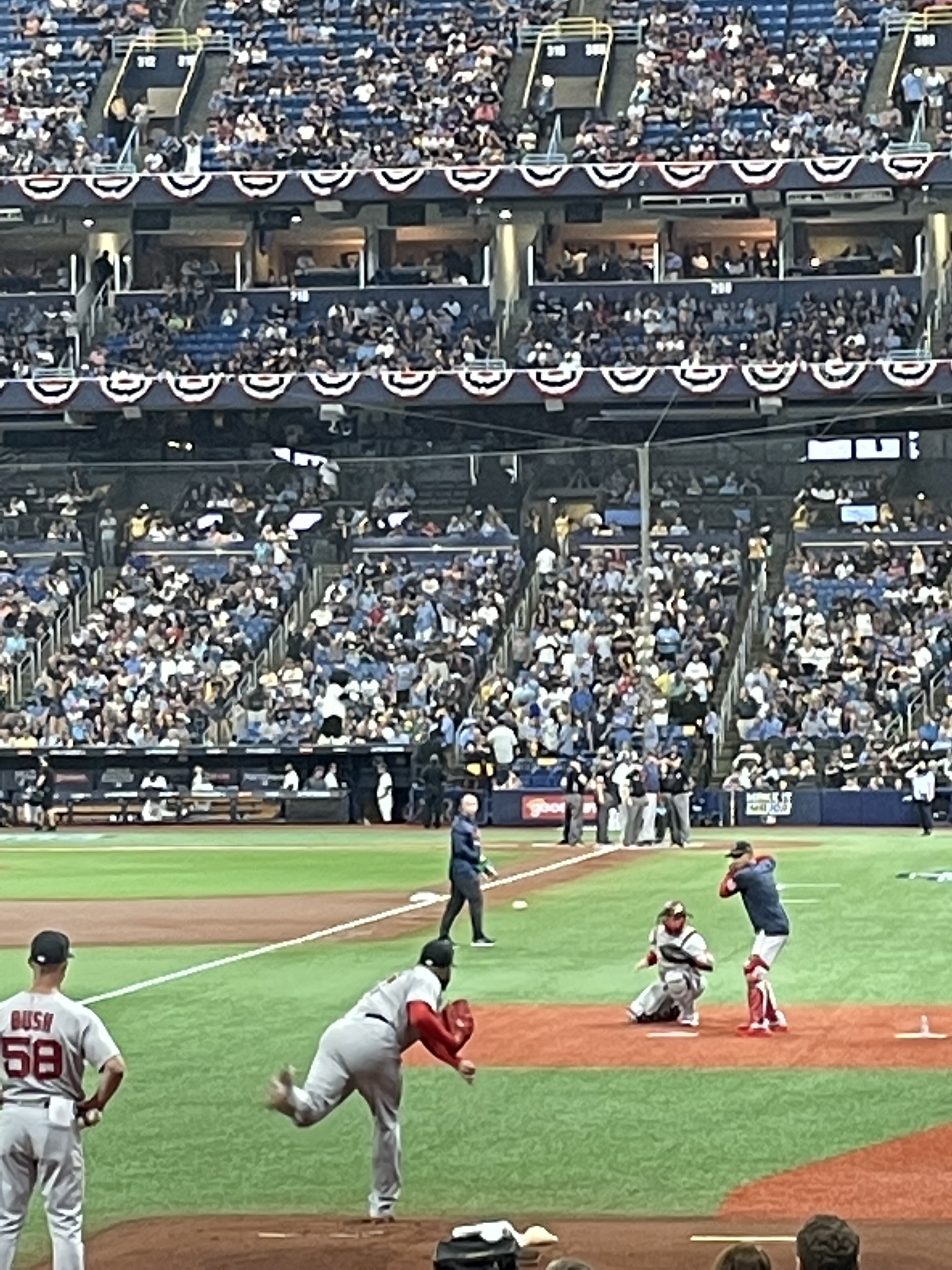 Hey folks. So anyhow.. My gal Emily and I went to Game 1 of the MLB ALDS game between Tampa Bay Rays and the Boston Red Sox. Tropicana Field, or as I call it, “The Juice Box,” is hands down the worst stadium in baseball. The ceiling is so low that sometimes a fly ball hits one of the rings that hold up the ceiling. It’s so bad, MLB will never allow Tampa to host the annual All Star game.