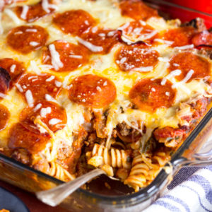 Pizza casserole is a fun and yummy, kid friendly meal. All you need is a few simple ingredients. Make it fun and let your kids choose their favorite pizza toppings!