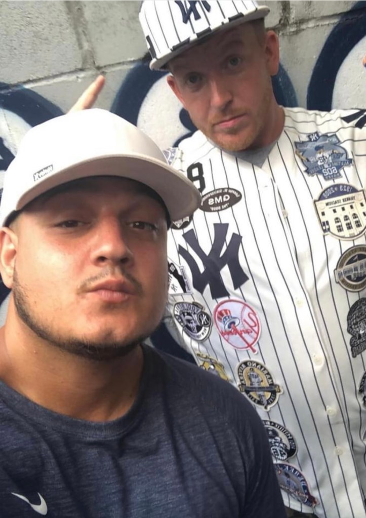 Old man just walked by me in a Clemente Pirates shirt and hat, along with a guy with an old, vintage Montreal Expos outfit. I have a Roberto Clemente rookie card. He was a class act. I walk into the La Bodega and I see Pete Anderson. He runs a great, Yankee Facebook group called True Blue. It’s a neat group for Yankee fans and has a lot of Bleacher Creatures as members. All the posts are nice and cordial. Pete comes down on the train from Westhampton to watch games when he can. He sits in the bleachers in his old pal Chris Higgins seats. Chris is an old time Bleacher Creature going back to the old Stadium in Section 39.