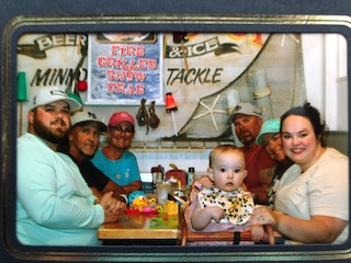 So, we’re all ready to go to Crabby Bills. Tyler, Kailey, Makenna and his folks all pile in Chris’s truck. Their Nissan Pathfinder is in the shop down here having a new radiator put in it. It’s been quite an ordeal for them as it was at a gas station in Gainesville since June. Our sweet girl, Bailee, was in a fender bender back in the summer.