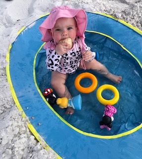 We’ve had a good day at the beach with the Phillips. Makenna played in the water and we all enjoyed sitting around talking. This is Makenna’s first trip to the beach. As expected from an 8 month old, she was a bit scared of the water at first, but within a few minutes, she was loving it.